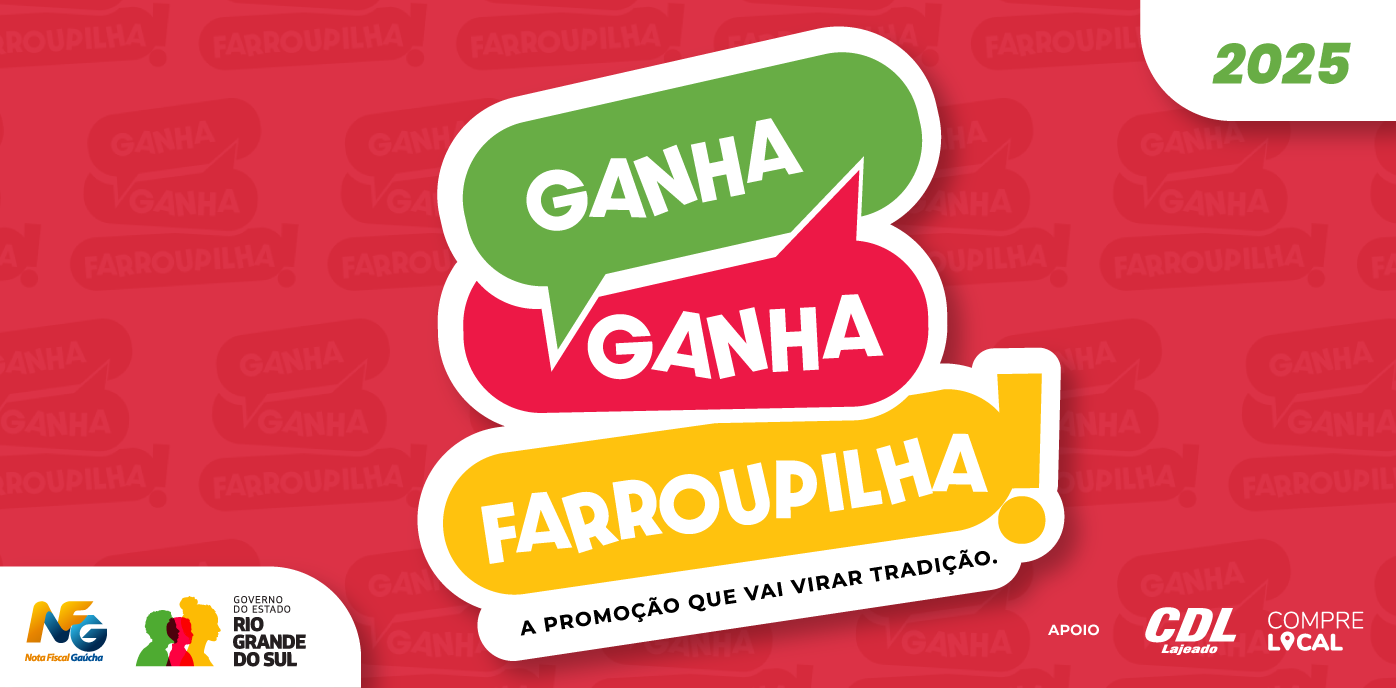 A CDL Lajeado é uma das apoiadoras da campanha Ganha Ganha Farroupilha, evento promocional promovido pelo Governo do Estado, com correalização da CDL Porto Alegre e do Movimento Tradicionalista Gaúcho (MTG). A promoção acontece entre 6 e 21 de setembro e tem como objetivo estimular as vendas no varejo gaúcho em um dos meses mais desafiadores para o faturamento.