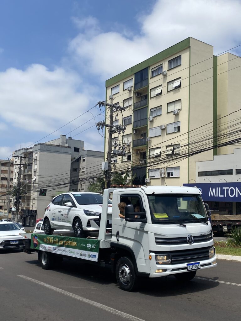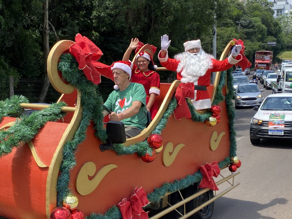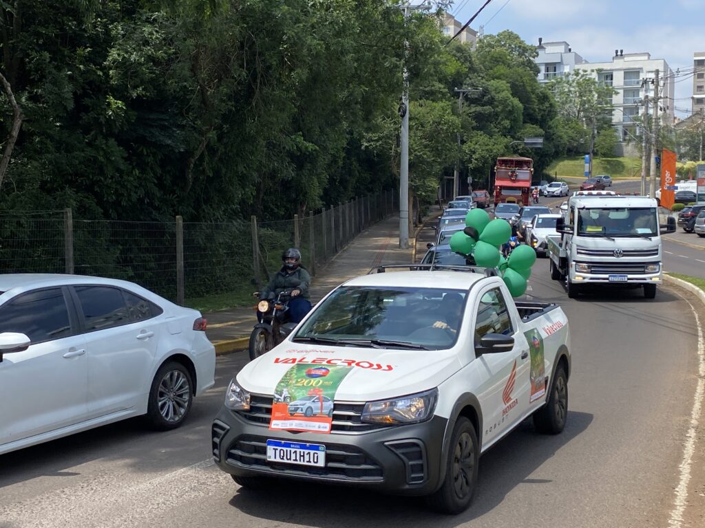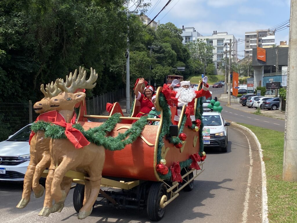 A CDL Lajeado promoveu neste sábado (29) a primeira carreata do Lajeado Brilha 2025. Chamando atenção por onde passou, a iniciativa evidenciou os atrativos da campanha natalina e impactou o público que circulava pelas ruas da área central. A mobilização teve a participação do Cedelinho, do trenó do Papai Noel e do Cortejo de Natal, formado pelo Papai Noel, Mamãe Noel e o divertido Duende TumTum, além da exibição dos principais prêmios da promoção: um Hyundai HB20 Flex Limited zero km e uma Honda Biz 125 zero km.