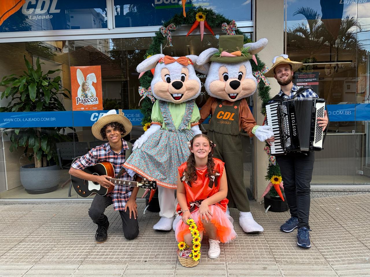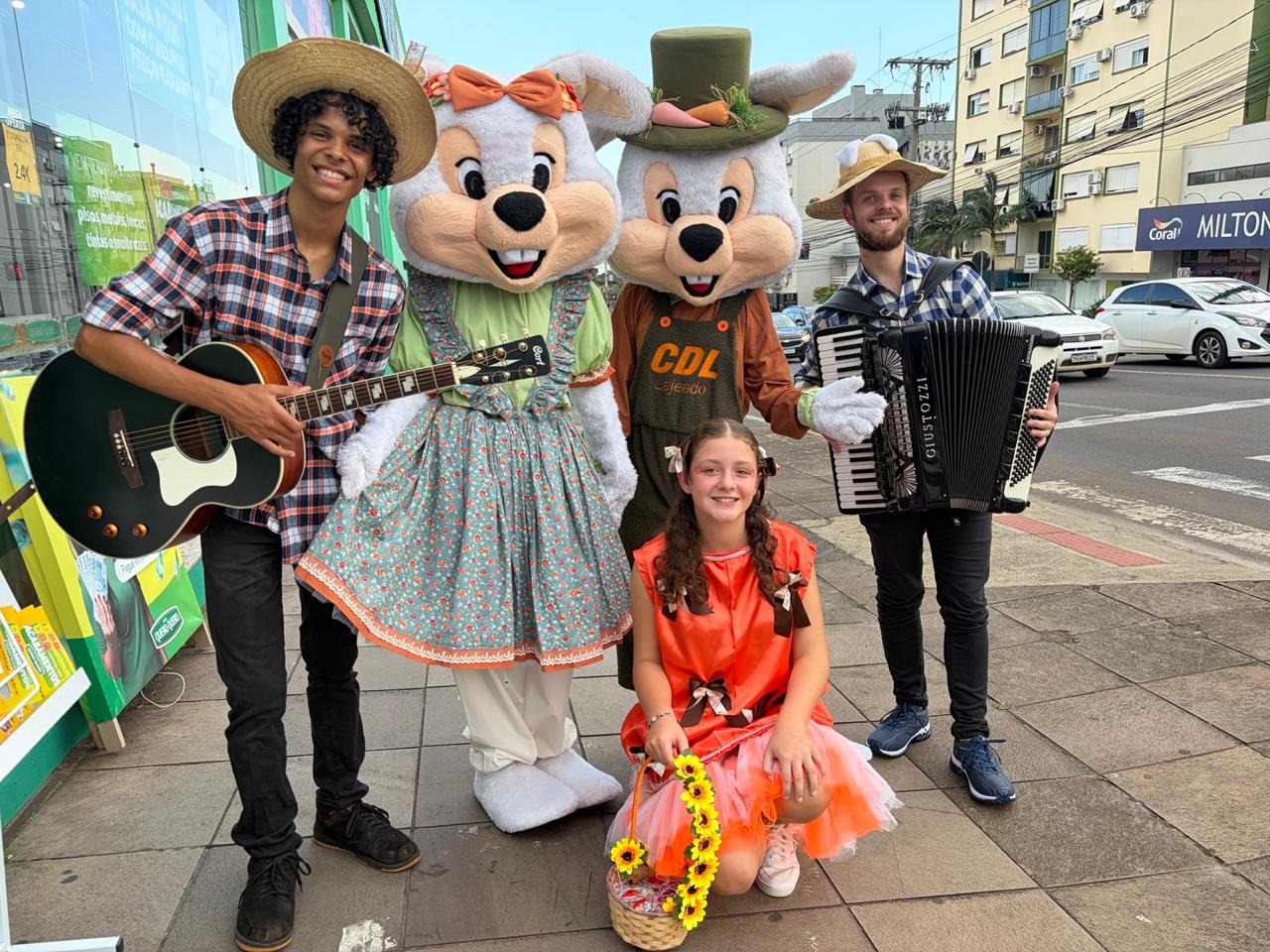 A véspera da Páscoa marca também a última aparição da Trupe do Coelho da CDL Lajeado neste ano. O grupo formado por um casal de coelhos, dois músicos e uma ajudante iniciou a visitação ao comércio no dia 27 de março e neste sábado (11) encerra sua atuação circulando pelas principais ruas do Centro da cidade.